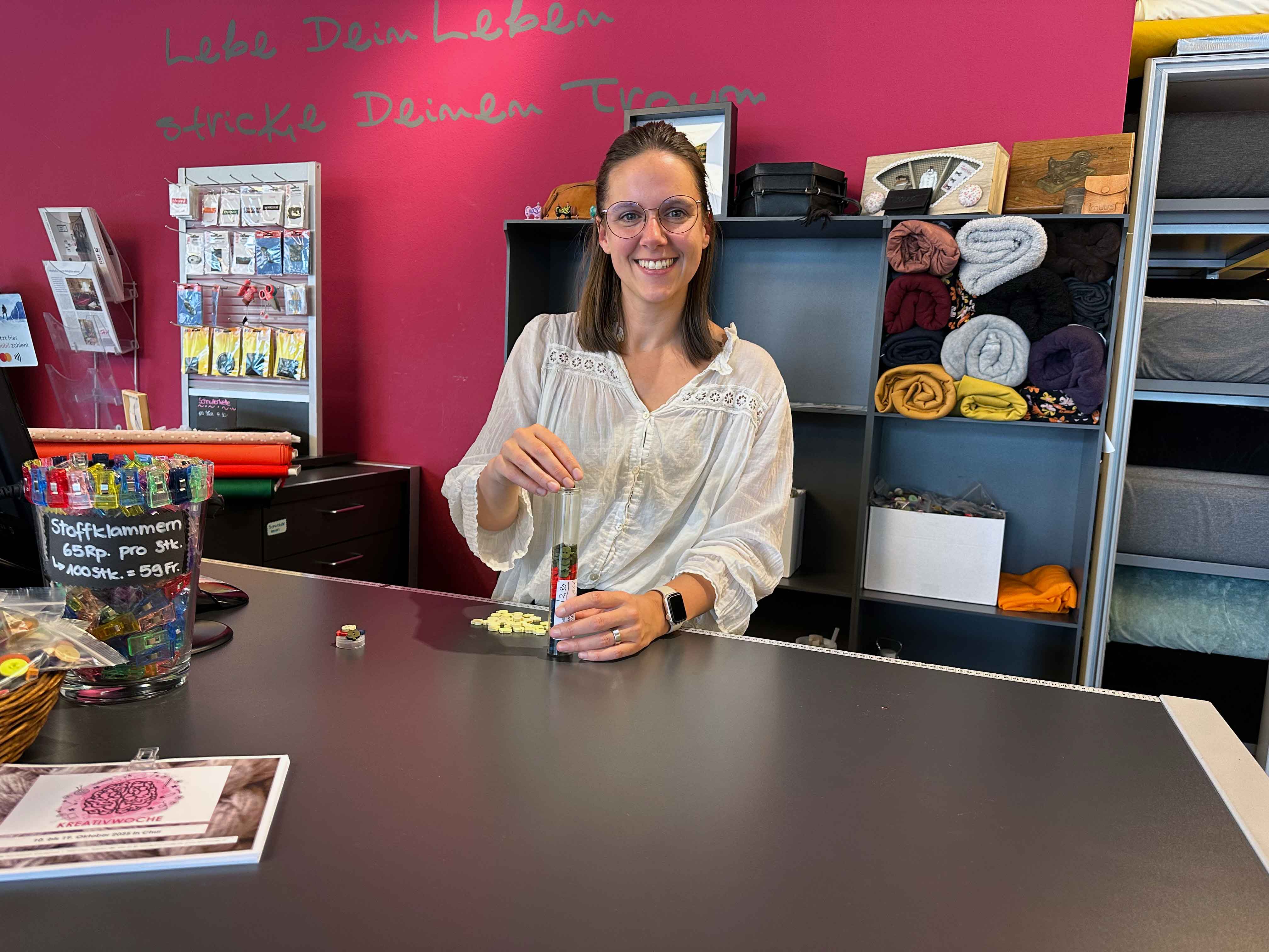Ladina Kuoni ist Schneiderin EFZ. Sie ist zuständig für: Bedienung und Beratung im Laden und für Nähkurse.